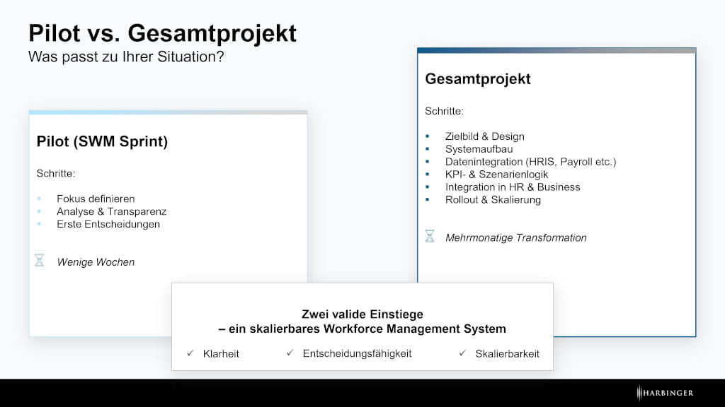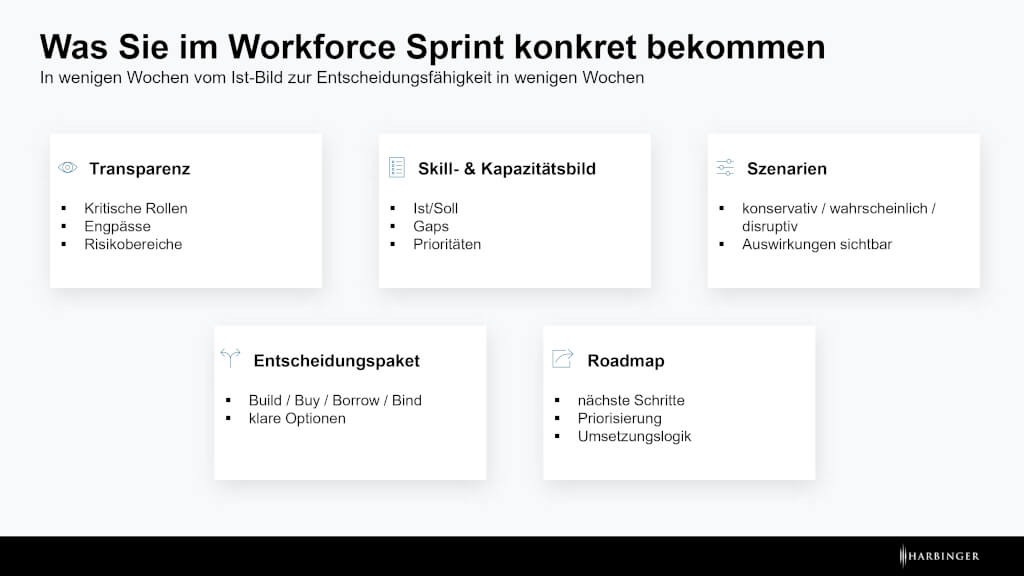 In beiden Fällen gilt: Der Sprint ist kein Selbstzweck. Er ist der Einstieg in eine strukturierte Workforce Transformation im Unternehmen.